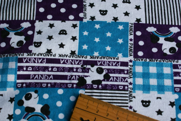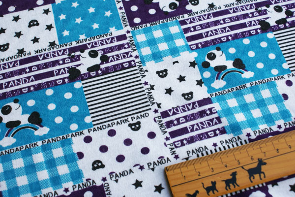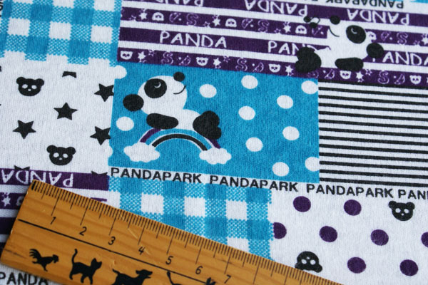 お昼寝パンダ*スムースニット*パッチワークブルー