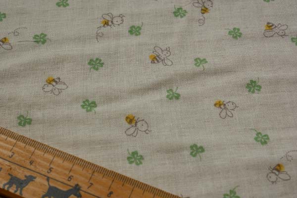 ほんわかほっこりのみつばちがクローバー畑を散歩しています〜。 コットン100%なので、やわらかで肌触りもいいですよ〜(*^^*) お子さんのパジャマやマスクにしても可愛いですね♪