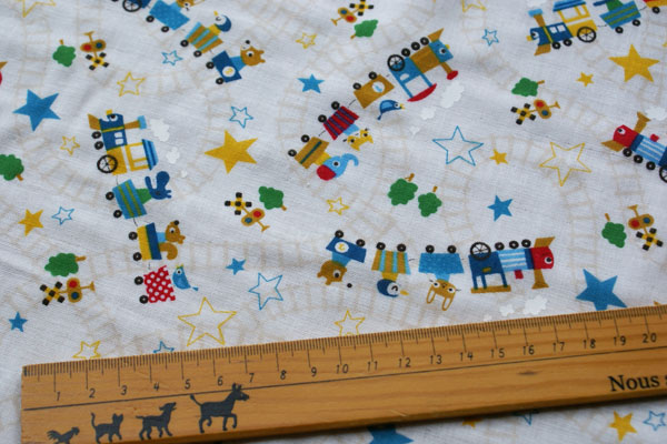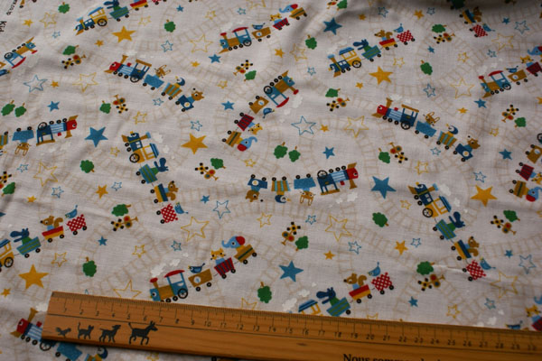ふんわりダブルガーゼ*キラキラきかんしゃ♪*生成り