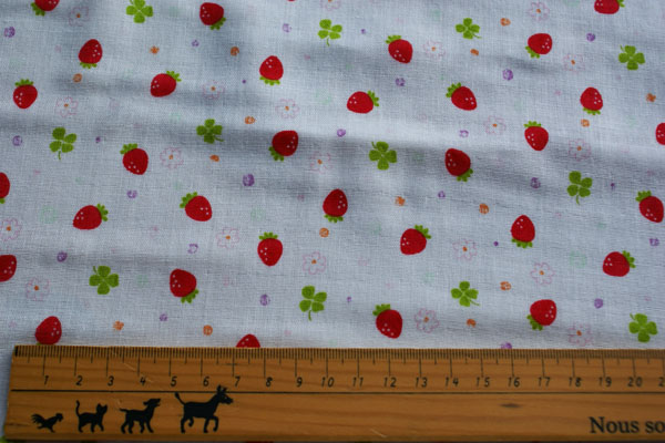 女の子大好き、いちごにお花とクローバがプリントされたかわいいダブルガーゼです。 ふんわりやわらかな素材ですので、肌触りもバッチリです。 お子様の洋服やパジャマ、スタイ等のベビーグッズにも♪ マスクやハンカチにしてもかわいいですよ(*^^*) いろんなアイテムに大活躍です!