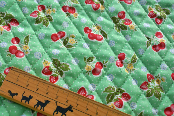 YUWA*ストロベリー&チェリーキルト*グリーン*松山敦子