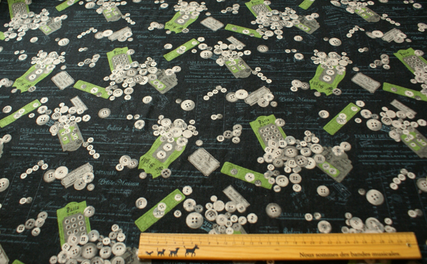 英字にアンティークボタンカードやボタン等がプリントされていて ソーイング好きにはたまらないですね♪ プリントが可愛いので、柄を生かして 大きめトートバッグや斜め掛けバッグなんかもかわいいかな〜