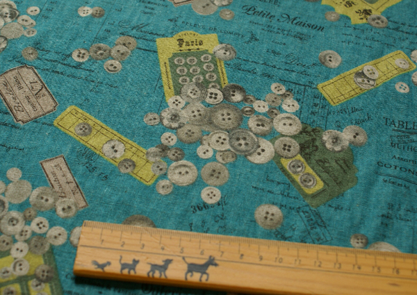 英字にアンティークボタンカードやボタン等がプリントされていて ソーイング好きにはたまらないですね♪ プリントが可愛いので、柄を生かして 大きめトートバッグや斜め掛けバッグなんかもかわいいかな〜