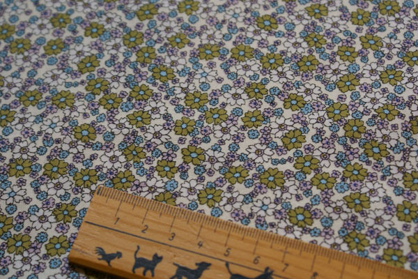 使いやすい小花柄のスケアー生地です。 バッグやポーチの布雑貨やブラウスやチュニック等のウェアーにも かわいいですよ♪ バイアステープにも良いですね。