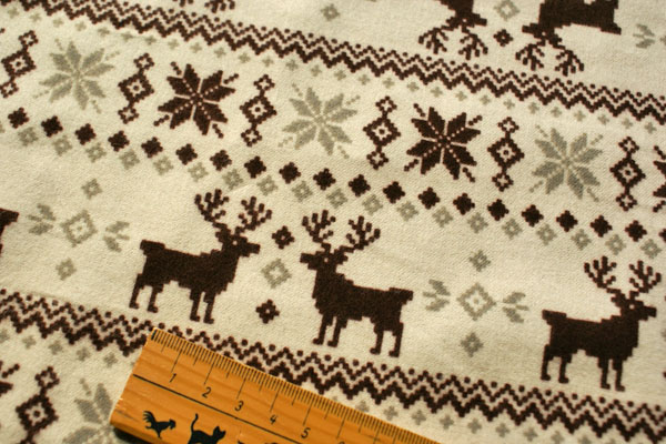 とても素敵なフランネル生地が仲間入り♪ あったかフランネルに雪の結晶やトナカイがプリントされた 秋冬ならではの素敵な暖かみのある生地です。 表面が起毛されていて、保温性も良く柔らかな肌さわりです。 お洋服やバッグ、ポーチ等の布小物にどうぞ♪