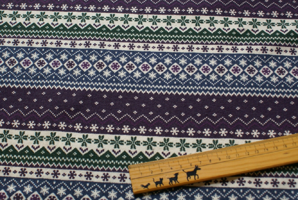 ノルディック模様が生地幅に対してボーダーにプリントされた起毛コットンです。