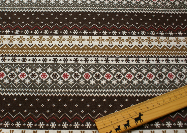 ノルディック模様が生地幅に対してボーダーにプリントされた起毛コットンです。