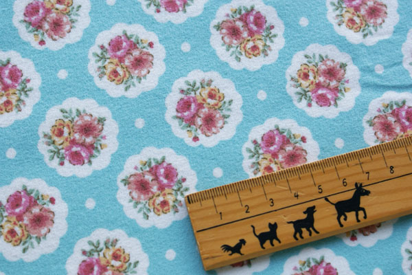 あったか起毛のフランネルフラワー生地です。 コロンとしたサークルフラワーがキュート♪ 布小物はもちろん、お洋服にもかわいいですね。