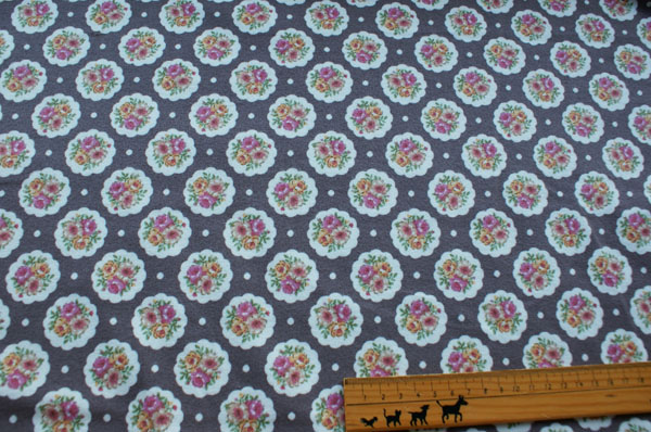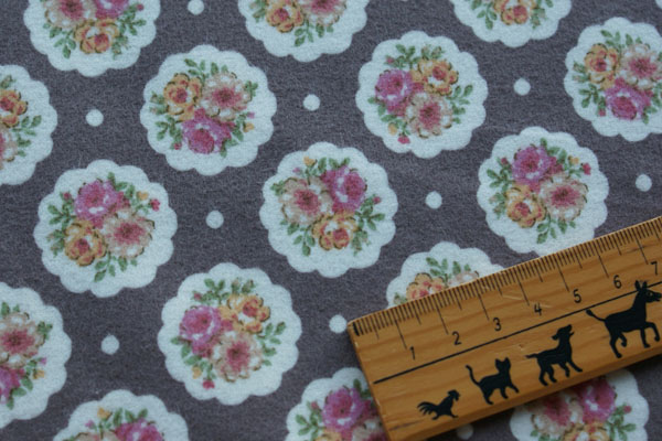 あったか起毛のフランネルフラワー生地です。 コロンとしたサークルフラワーがキュート♪ 布小物はもちろん、お洋服にもかわいいですね。