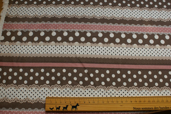ふんわり暖か素材のシャツコールが入荷しました。 ラブリーレースとドットがボーダーにプリントされた 一枚でもとてもかわいい生地です。 柄を生かしてグラニーバッグやスカートなんてかわいいですね♪ 布小物、インテリア、ウェアー等、幅広く使って頂けます。